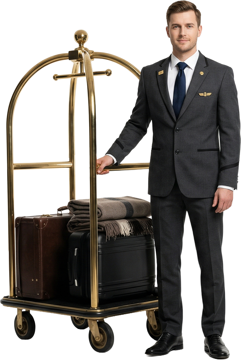 Bellboy personeli, misafirleri karşılayan ve yönlendiren ekip olduğu için dış görünüm büyük önem taşır. Kullanılan üniformalar, otelin prestij algısını destekler.